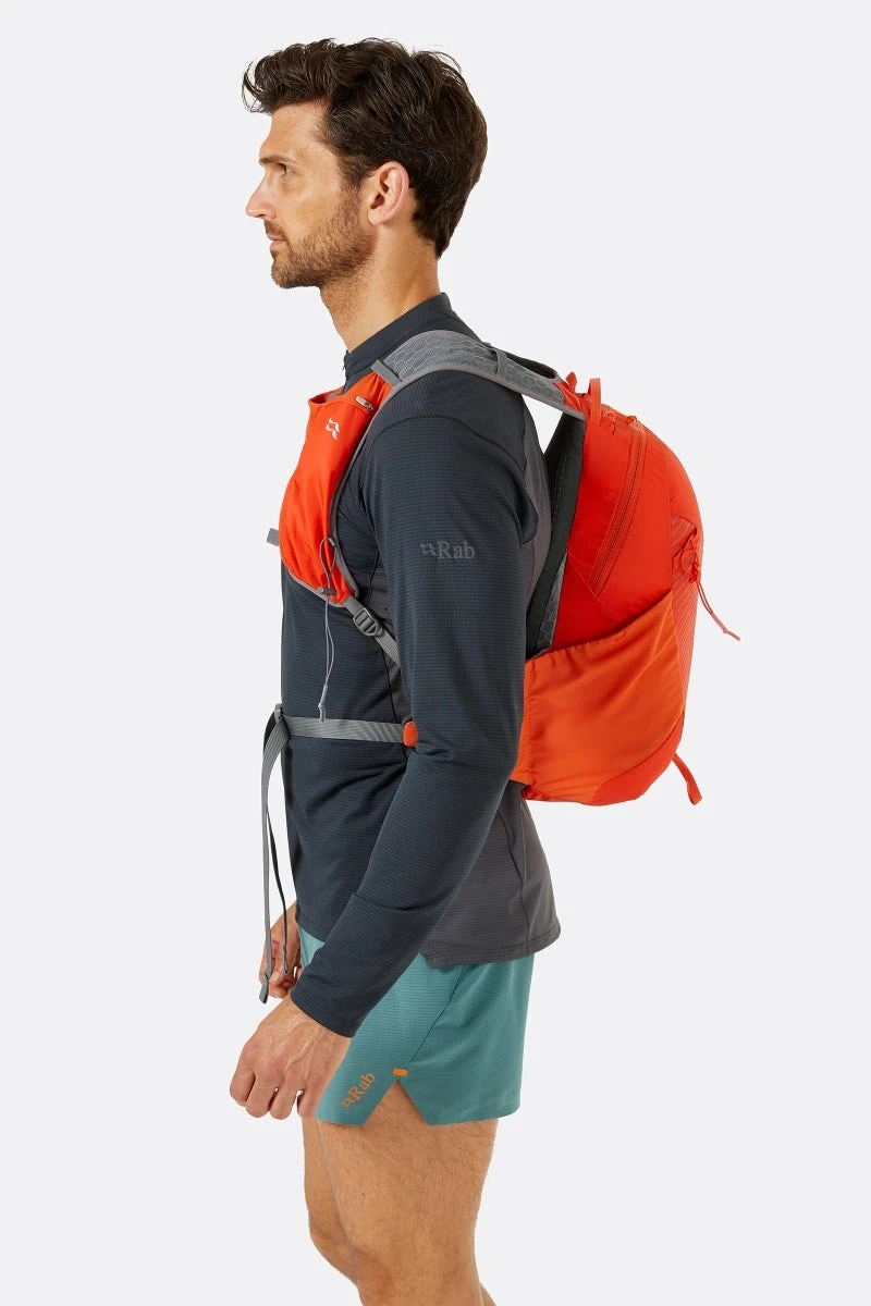 The Aeon LT 12 has on-harness walking pole attachment and stretchy side stash pockets, enabling quick access to kit for adapting to oncoming terrain or turbulent weather. It has an additional walking pole attachment on the front of the pack, a front stash pocket ideal for wet gear, and side compression straps to secure the contents. Hydration compatible with space for a 3L bladder, with zipped harness pockets for storing snacks, gels, or flasks, you can stay refreshed without needing to stop.