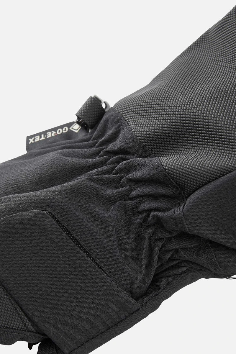 In addition to a tough, highly textured polyurethane palm, the fully featured Cresta GTX Glove features an extended pull-on cuff with an adjustable wrist strap to keep the elements at bay.