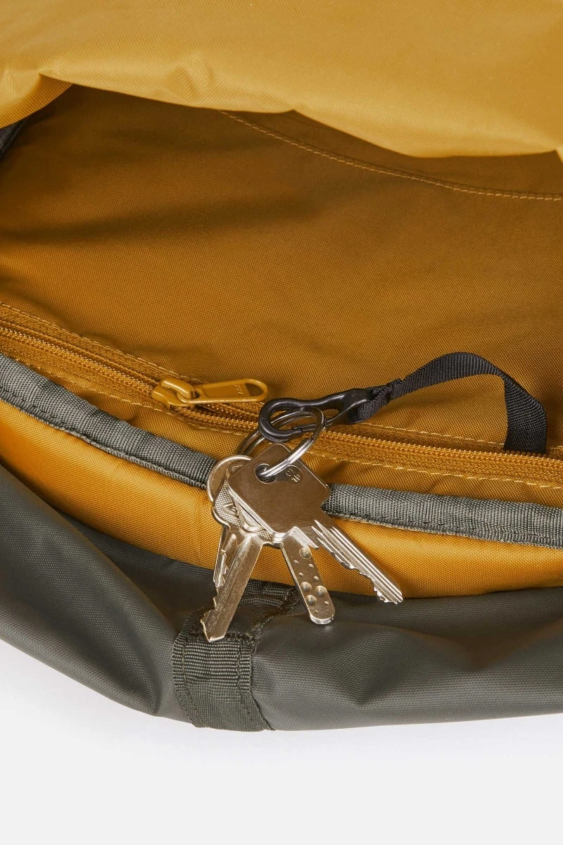 The moulded back panel is cushioning and combines with the sternum strap to give the pack a comfortable fit. Inside, the workspace compartment features a waterproof Dryzone™ sleeve for your 15” laptop and further organisation for everything you need on the go. Your in-ear wireless headphones can be slotted into the discrete harness pocket for easy access, and there are stretchy side pockets for additional handy storage. The key clip and internal zipped pockets keep your valuables secure.