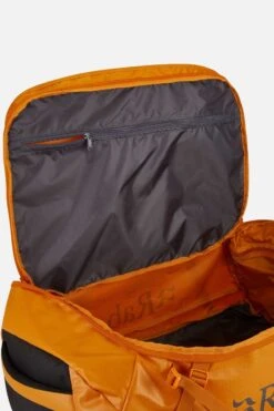 The kit bag has a large zipped internal mesh pocket for stashing essential items like wallet, passport, or head torch. It has compression straps to cinch it securely and two useful grab handles.