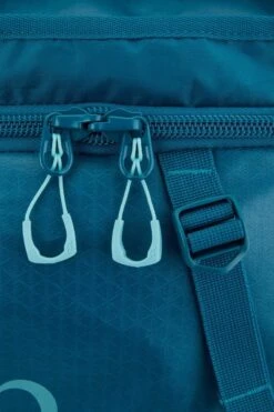 The kit bag has a large zipped internal mesh pocket for stashing essential items like wallet, passport, or head torch. It has compression straps to cinch it securely and two useful grab handles.