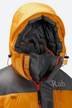 A downproof Pertex® Quantum lining and boxwall baffle construction with differential cut maximise loft to improve heat retention. The down extends into a helmet compatible hood, which has a wired peak and adjustable fit to keep the heat in and the weather out.