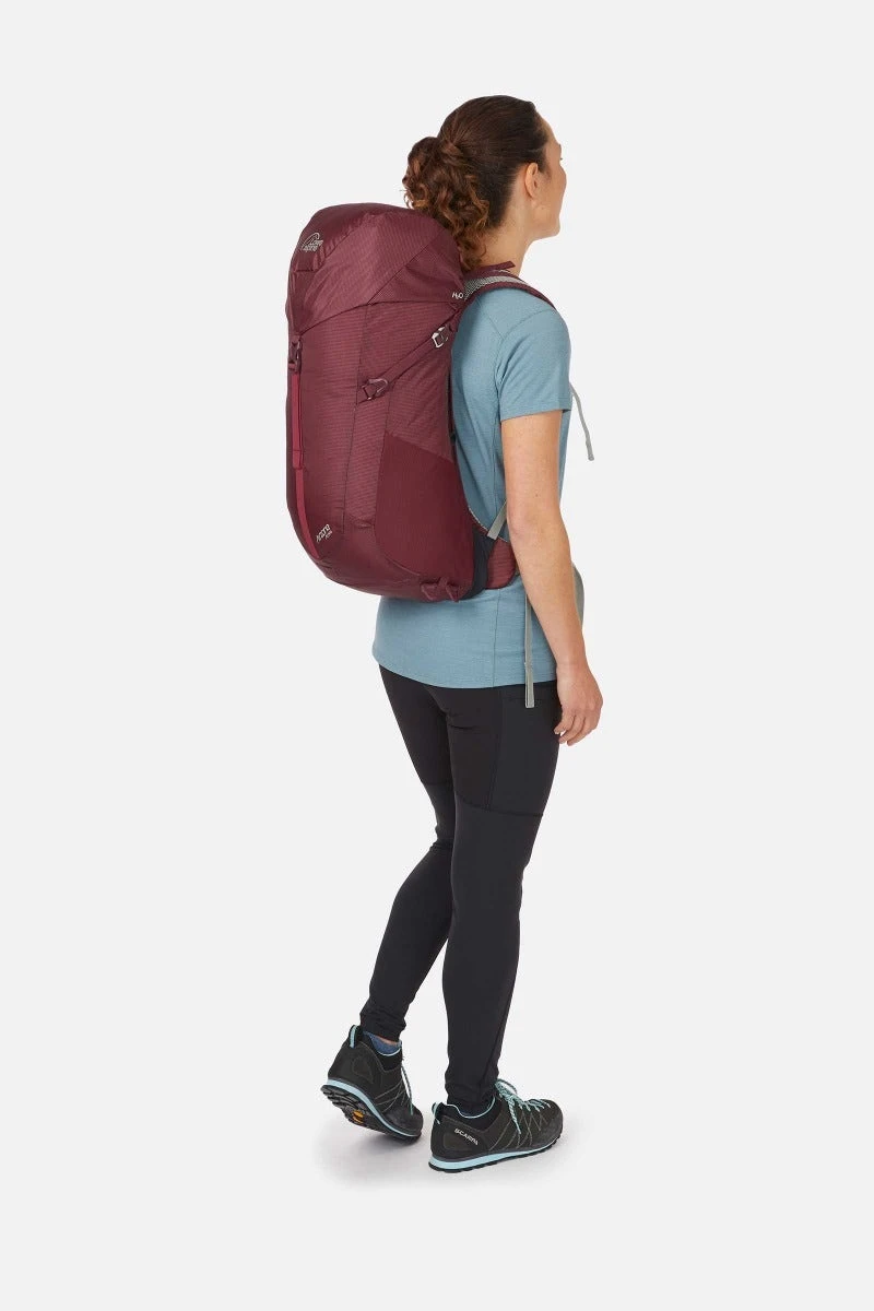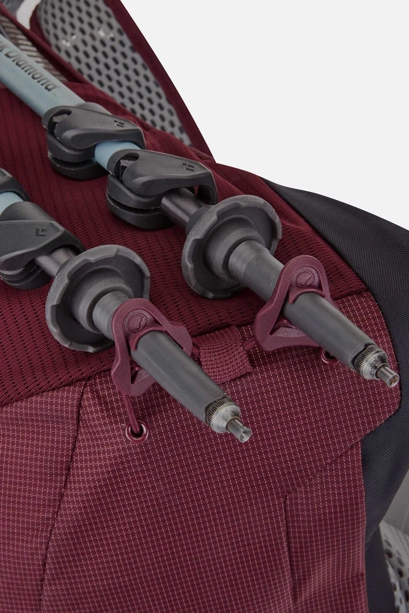 The backpack is compatible with a 3L water bladder and features stretch mesh water bottle side pockets, so you can stay hydrated on the move. You’ll find a further handy pocket on the lid of the pack and a secure internal pocket for valuables. Walking poles can be stored using the TipGripper pole attachment points, and the protective rain cover can be quickly deployed when the weather turns.