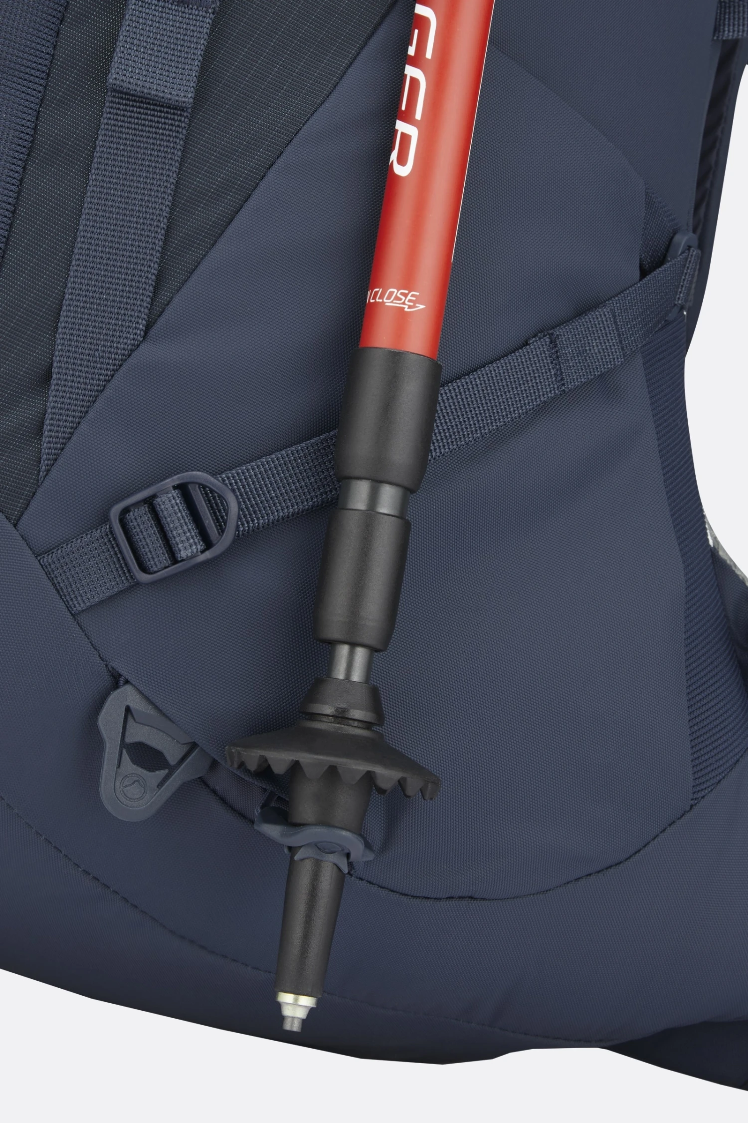 It also features a mesh-covered, thermo-moulded back pad, alongside hip belt and shoulder straps built from dual-density foam with breathable mesh to help draw heat and moisture away from your back.For ease of use, it offers front access as well as top-loaded entry and its stretch side pockets, extendable lid and front-stash clamshell design mean you can tailor your load to the demands of the day.
