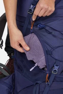 The pack offers easy access to all your kit using the zipped front and lower entry, with an internal divider panel to keep everything organised. The padded hip belt has easy-access pockets which are perfect for keeping snacks or a compass close to hand, while the elastic front bungee is the ideal place for stashing your wet gear. On extended trips you’ll be glad of the base and side compression, which you can cinch to secure your carry as supplies decrease. The pack is compatible with a 3L water bladder, allowing you to stay hydrated on the move, and features a detachable rain cover which can be quickly deployed when the weather rolls in.