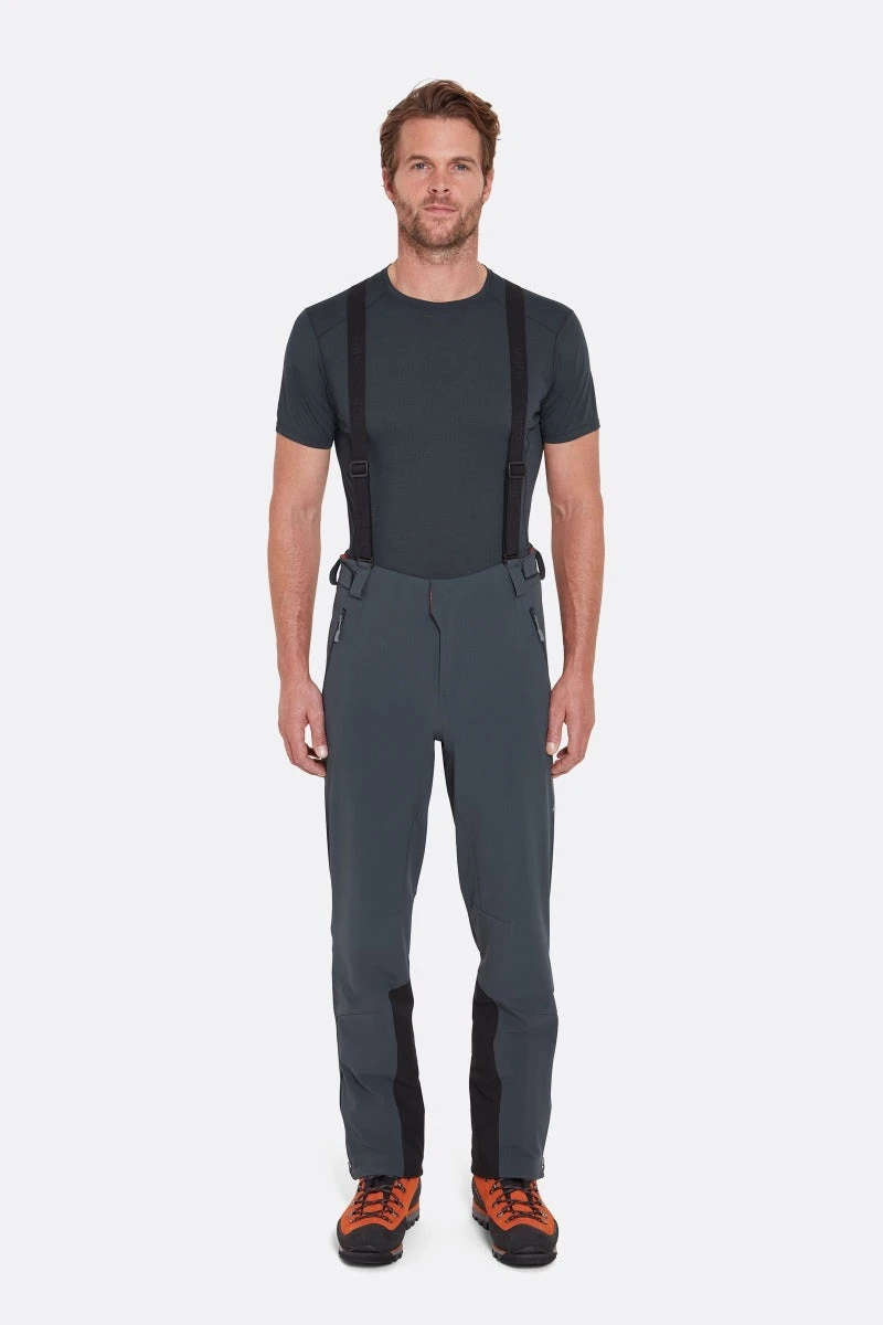 The most durable and protective of the Ascendor range, they are built with highly wind and weather resistant, bonded 2-layer Matrix™ softshell. This flexible midweight fabric offers warmth in wild weather and the reinforced kicker patches provide protection on the lower leg from rugged terrain and crampon spikes. The Ascendor Alpine Pants have a customisable fit with a semi-adjustable waistband, hook-and-loop waistband tabs and the option to wear with a belt or detachable braces. The high waistband fits seamlessly with a harness, and articulated knees and a long length gusset enable complete freedom of movement when climbing. Ventilation is provided through two concealed zipped thigh vents and the zipped ankle gusset allows the hem to widen to accommodate larger winter climbing boots.