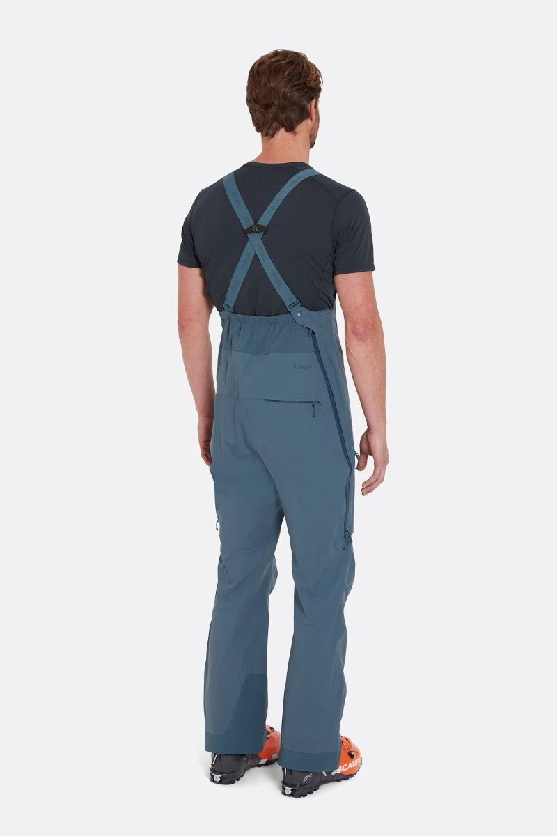 The first choice for adventurous ski touring and ski mountaineering when mobility, weight, and breathability are the highest priority. Built with our own Proflex™ fabric, our softest hardshell material, they offer the protection of a hardshell and the comfort of a softshell. Efficiently pulling moisture away from the body, these bib pants are ideal for keeping a good pace on the skin up, with excellent stretch and mobility for tricky kick turns and steep boot packs. On spring missions and fast-moving climbs, you can dump heat quickly through the zipped thigh vents.