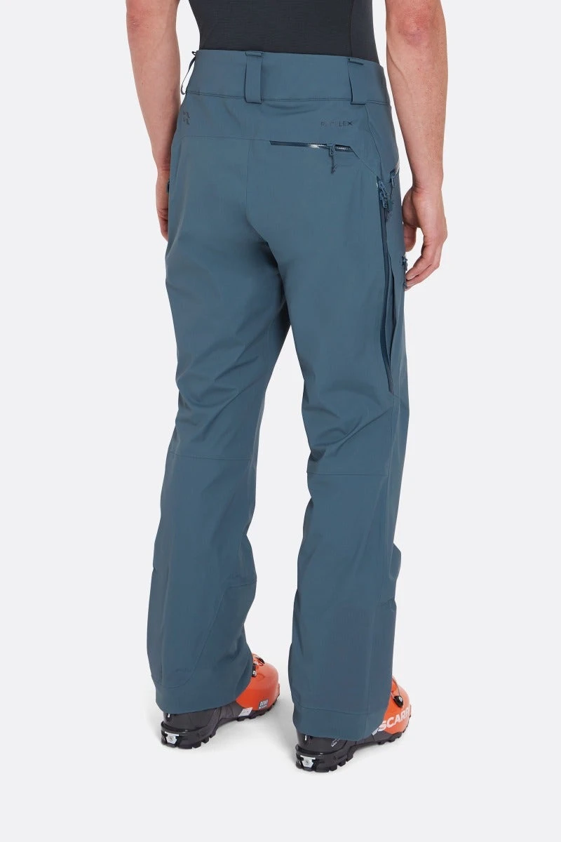 Giving you options to completely customise the fit, the pants have hook and loop waist adjustments as well as belt loops and attachment points for braces. Pockets have been carefully positioned for easy reach and for the least interference when you’re skinning and skiing. The interface with your ski boots is cleverly designed with an adjustable hem and a high stretch, internal gaiter to seal out the snow. Complete with tough crampon patches, these pants are equipped for intrepid ski adventures.
