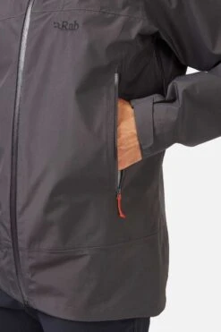 The jacket has been designed for exceptional comfort on the mountain, with underarm vents allowing you to dump heat when the gradient climbs, and a fleece-lined chin guard for when you’re sealing out the weather on a blustery ridgeline. The two-way adjustable hood can be tightened with a single hand pull, and provides an easy head turn with unhindered vision. It also features a stiffened peak, helping to shield your face from rain. The hook and loop adjustable cuffs fit seamlessly with gloves, and there are two hand pockets for warming numb fingers on the coldest days.