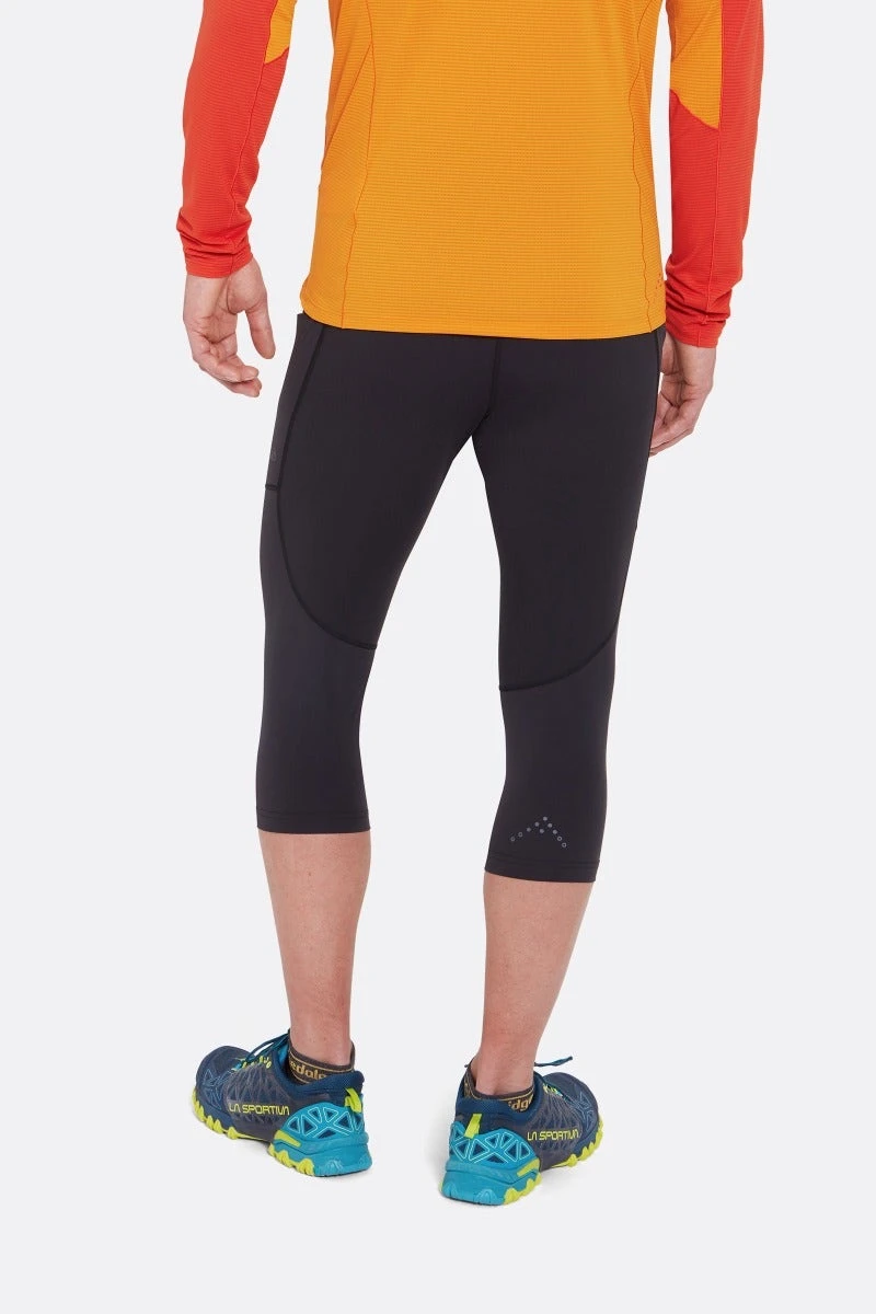 They have a deep, elasticated waistband to optimise the fit and a gusset panel for improved comfort and complete freedom of movement. The leggings sit around mid-calf and have soft, low bulk, flat lock seams throughout. There are pockets on both legs and a rear zip pocket, ideal for stashing a key, phone, or gels. Built for the fast and light mountain runner, these supportive stretch shorts minimise friction and feel weightless on the move.