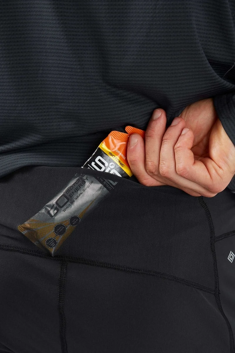 Built to run through all four seasons, these mountain tights are engineered with three advanced fabrics to give you a hybrid of wind protection, durability, and stretch where it’s needed. GORE-TEX INFINIUM™ WINDSTOPPER® panels across the front easily deflect the wind while breathing and wicking effectively. The double weave Matrix™ fabric across the seat and back of the thighs offers reinforcement and durability. Finally, the deep waistband and articulated knees are built with high stretch, lightweight Flexile™ 100 ensuring a secure fit and complete flexibility on the move. They have a stretch mesh pocket and a zipped security pocket, so you can store keys, gels, snack, or phone within easy reach – ideal for shorter distances when you’re running without a pack.