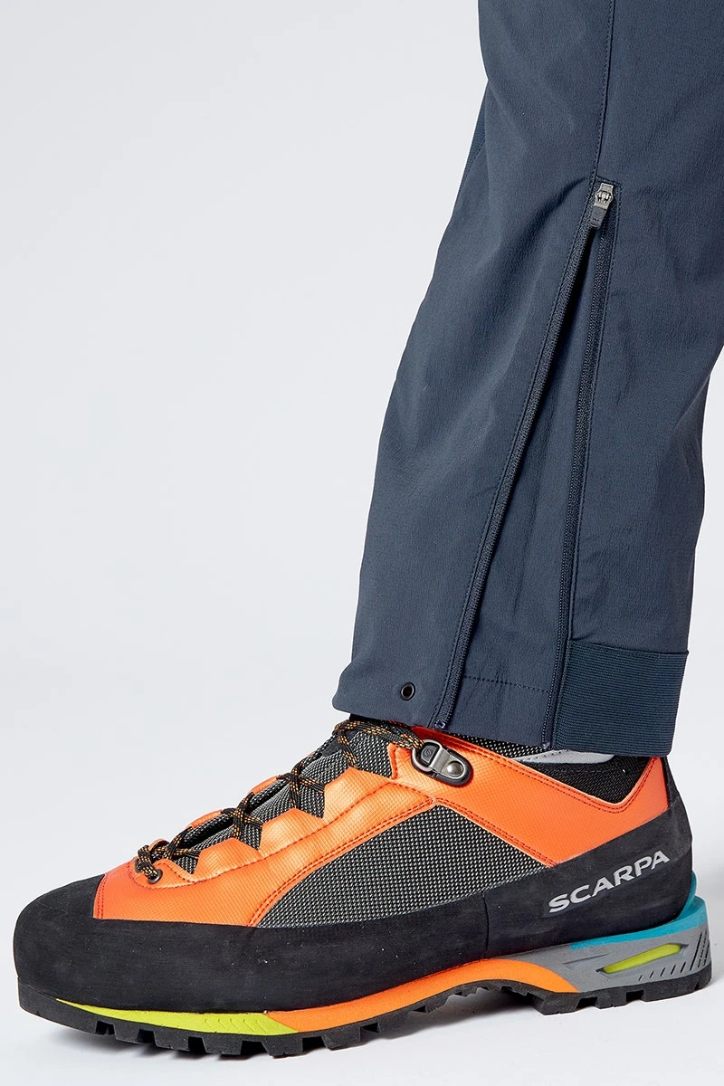 Our softshell Torque VR Pant is designed to cater for the mixed activities and weather conditions of winter mountaineering. The Vapour-Rise™ polyester lining comprises zoned VR Warm and VR Wicking fabrics to optimise moisture transfer in high-sweat regions. A double-weave Matrix™ polyamide outer with integrated elastane also provides outstanding flexibility for complete freedom to stretch. The outer provides plenty of breathability for strenuous ascents and a DWR coating for increased weather resistance. In addition to reinforced knee and ankle patches, there are expanding ankle gussets with YKK® zips for large boots, as well as zipped thigh vents for easy temperature regulation.