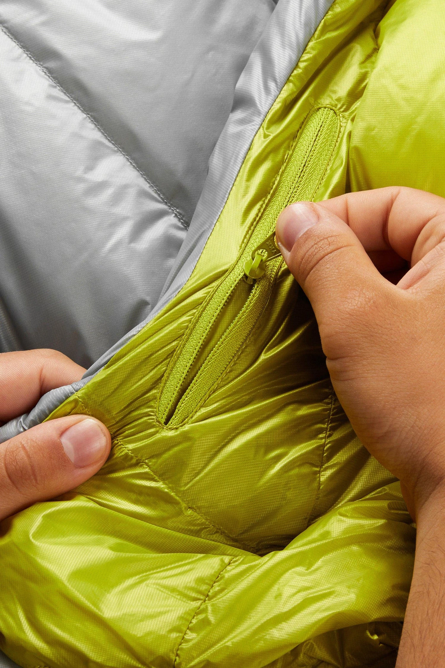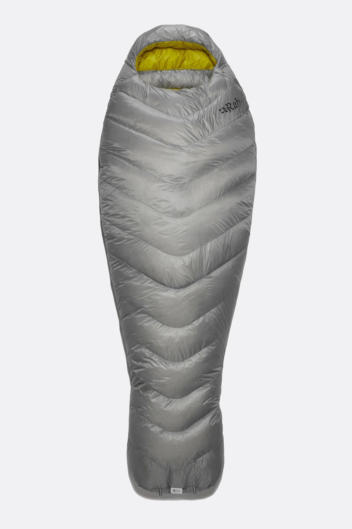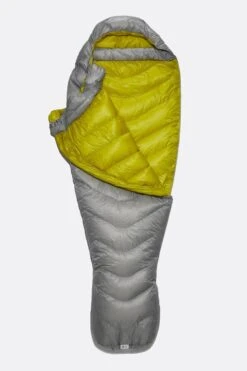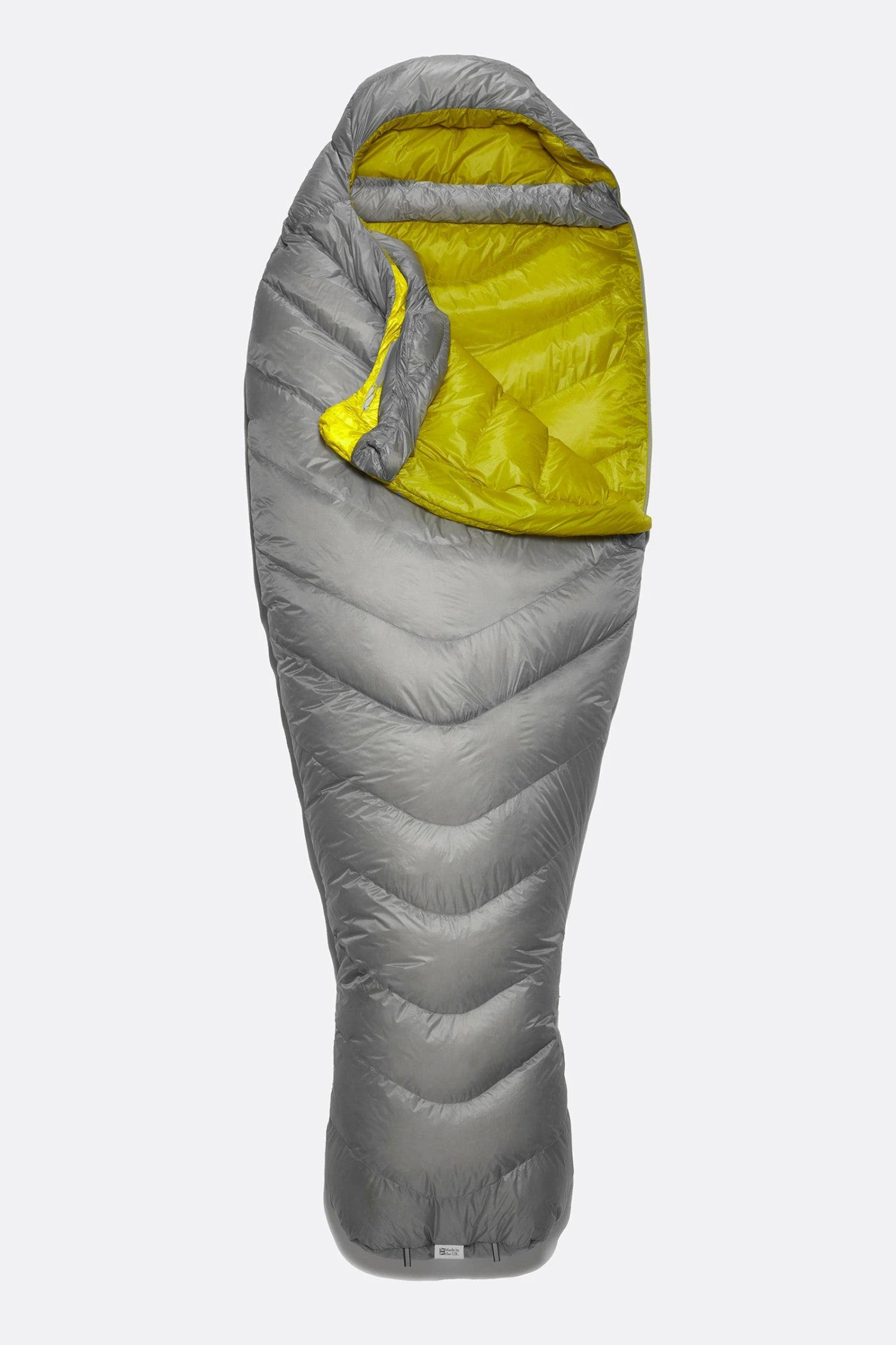 Weighing in at just 475g, it contains 200g of ultra-high lofting 900FP, goose down. The chevron style baffle design keeps the down in position, optimising core warmth and reducing the amount of fabric needed compared to traditional horizontal baffles. The outer is made from our own wind and water-resistant, Atmos™ fabric. At just 7D with a built-in ripstop, it’s both ultra-light and super tough. It has a narrow mummy shape to minimise bulk, lightweight zips and pullers, and comes with a lightweight, waterproof, roll top compression sack for protection from the elements and a small pack size while on the move.