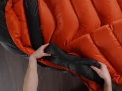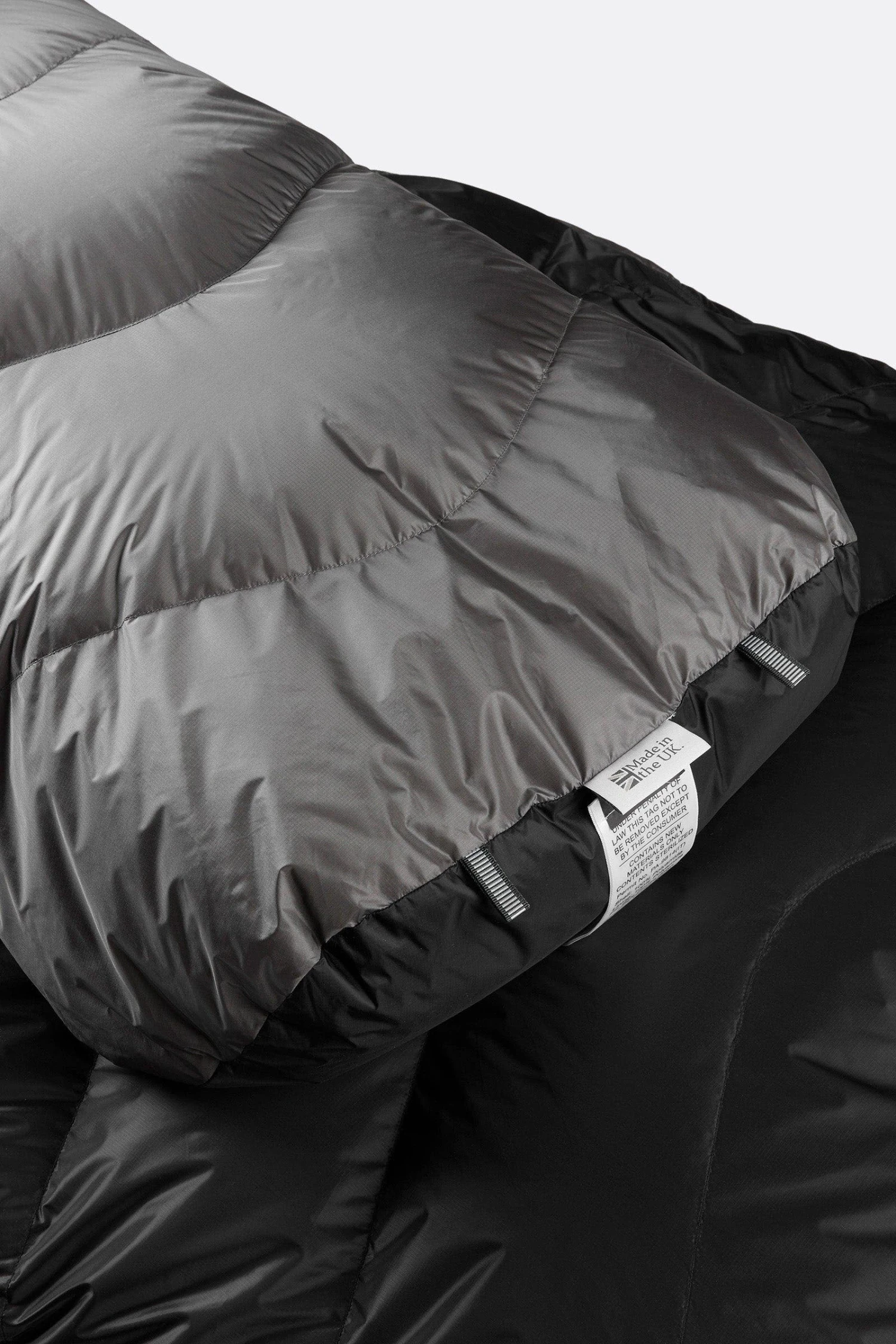 The Neutrino Pro 500 is filled with 500g of 800FP, goose down, stabilised in chevron shaped baffles, cleverly designed to reduce the amount of fabric needed compared to traditional horizontal baffles. The trapezoid boxwall baffle construction allows the down to fully loft, eliminates cold spots, and maximises warmth. Additional baffles along the length of the zip and around the neck decrease heat loss and with an adjustable drawcord around the hood you can cinch the bag around your face.