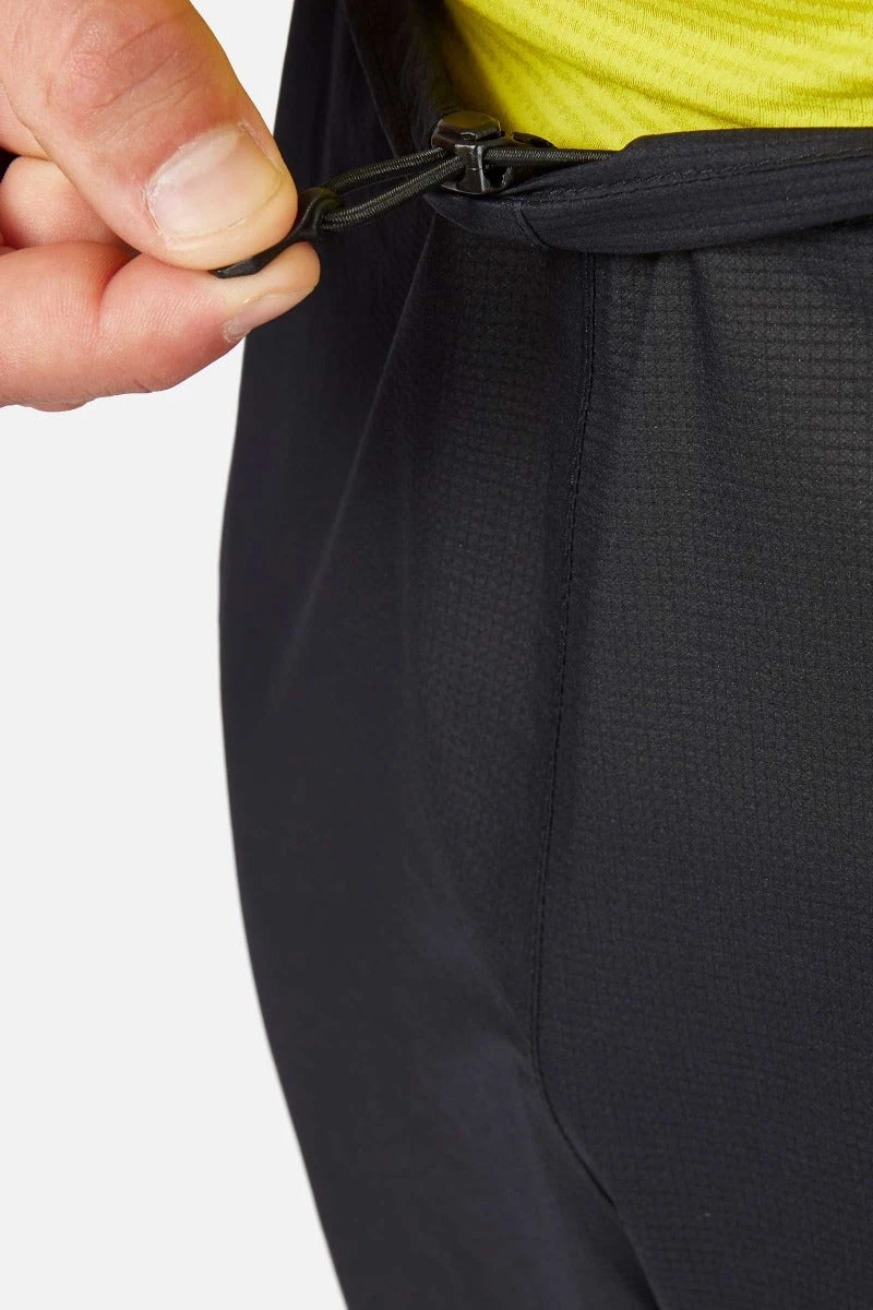 The Phantom Pants offer an unrestricted range of movement with pre-curved knees optimised for running, stretch, a slim-fit, and not an ounce of unnecessary fabric. The waistband is part elasticated with a drawcord adjuster to perfect the fit and the lower leg hem has a snap fastener with hook and loop, for easy on/off pull over trail shoes.