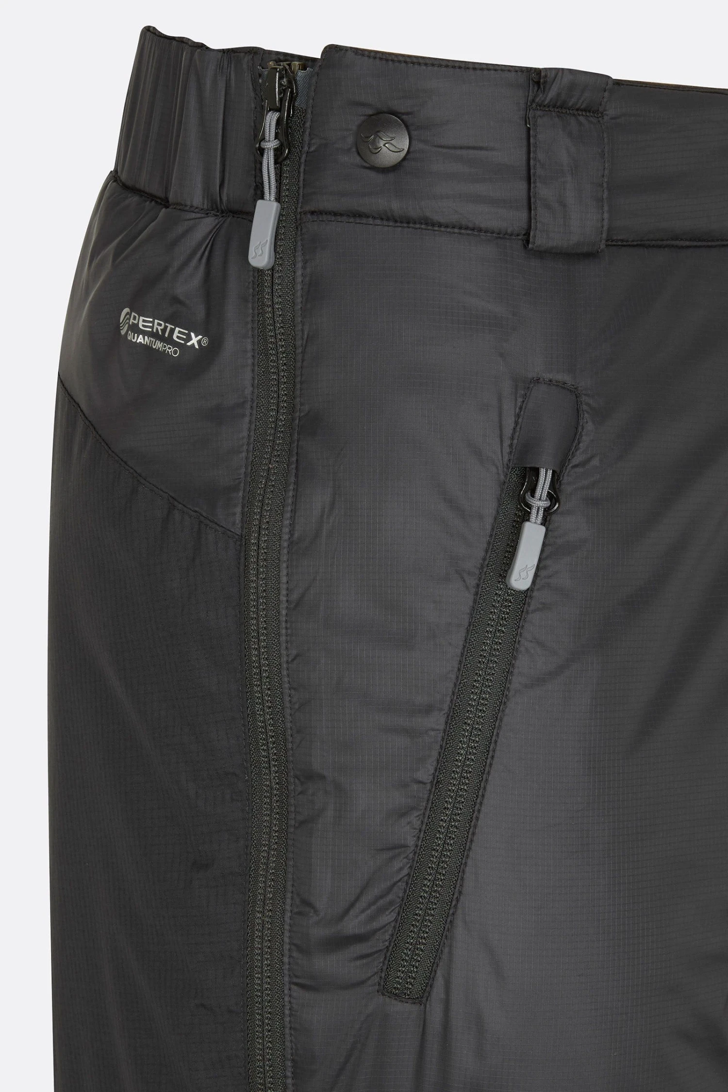 The PrimaLoft® Gold Insulation uses fine, water-repellent fibres with a high warmth-to-weight ratio and excellent breathability and improved comfort during activity spikes. The tightly woven Pertex® Quantum outer is light and supple, fending off the elements while reinforced Pertex® Shield panels at the seat, knee and inner leg add extra durability at high-friction zones.