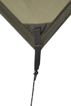 The tarp is made from tough, siliconised 30D Cordura with a PU coating. Ultralight and waterproof, itβs incredibly strong with a taped, catenary ridge seam to keep the tarp taut, allowing rain to run off smoothly and preventing flapping in the wind. The eight guy points are reinforced for strength, and with four central lifter points there are a variety of setup options available. This tarp includes nine pegs and six guy lines.