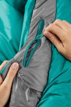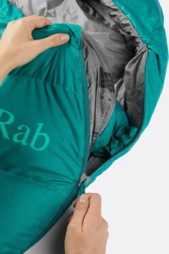 Engineered to maximise down performance, the Alpine bag has clever construction. Trapezoid boxwall baffles allows the down to fully loft, eliminating cold spots, and maximising warmth. The chevron baffle design improves down stability, distributing the down evenly around the whole body. In addition, the openings on the Alpine bag have been designed to reduce heat loss, with a 3D-shaped, down collar that can be cinched in snugly to trap the heat, and a down-filled baffle along the zip to prevent heat from escaping.