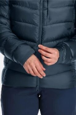 The Women’s Axion Pro Jacket is built from durable recycled Pertex® Quantum Pro ripstop nylon with midi-baffle stitch-through construction. While the fabric’s weatherproof coating helps increase the jacket’s external water resistance, internally the 700FP 100% recycled down is combined with Nikwax® hydrophobic treatment to retain its loft for maximum warmth. As part of our Mountain range, the Women’s Axion Pro Jacket also features a pair of warm, harness-friendly zipped hand pockets, as well as fully adjustable cuffs and hem to help shut out the cold. While the helmet-compatible hood uses Stratus™ synthetic sheet insulation for improved performance in the wet, the hood can also be removed for more casual use.