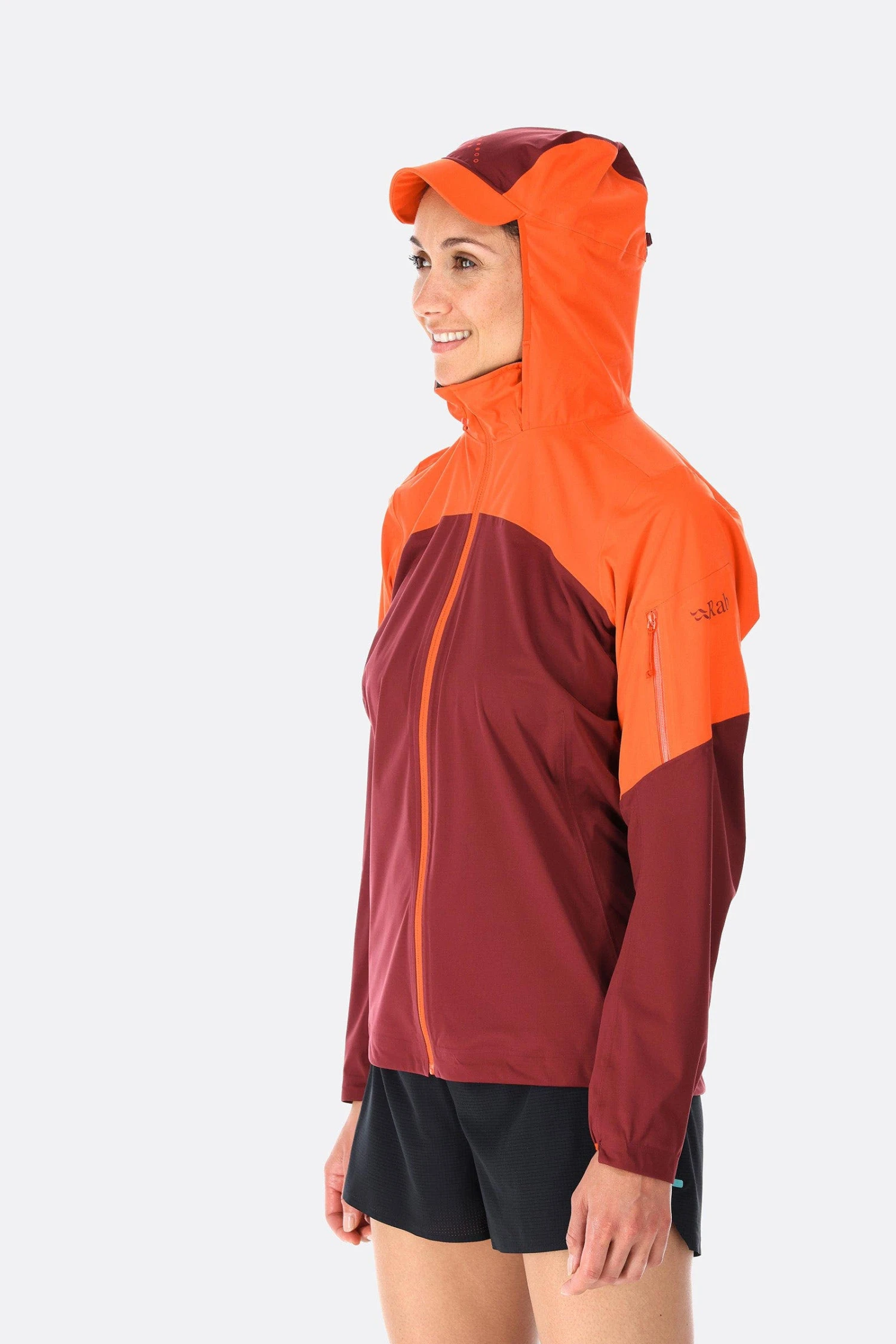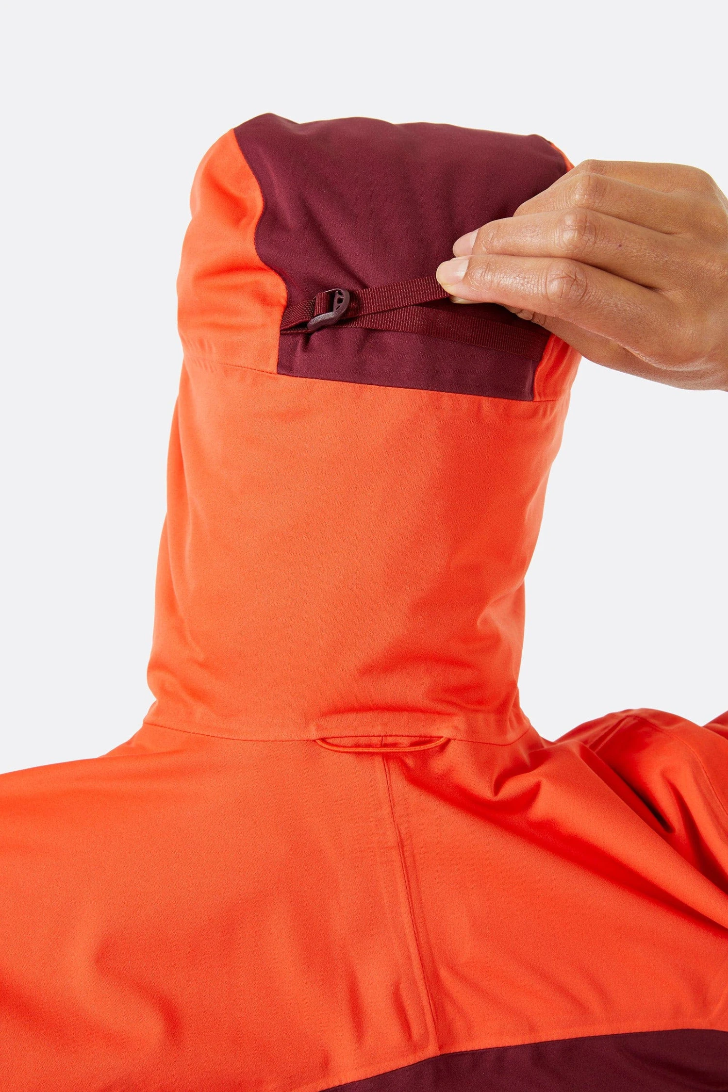 The close-fitting, roll-away hood with laminated, cap style peak is designed for weather protection without limiting vision. It has a crown adjustment to secure the fit and a rear vent for air flow when the incline increases. Additional ventilation holes on the back of the upper arms help regulate your temperature and a lightweight, full length zip with a waterproof storm flap can be zipped right up to the neck to seal out the weather.