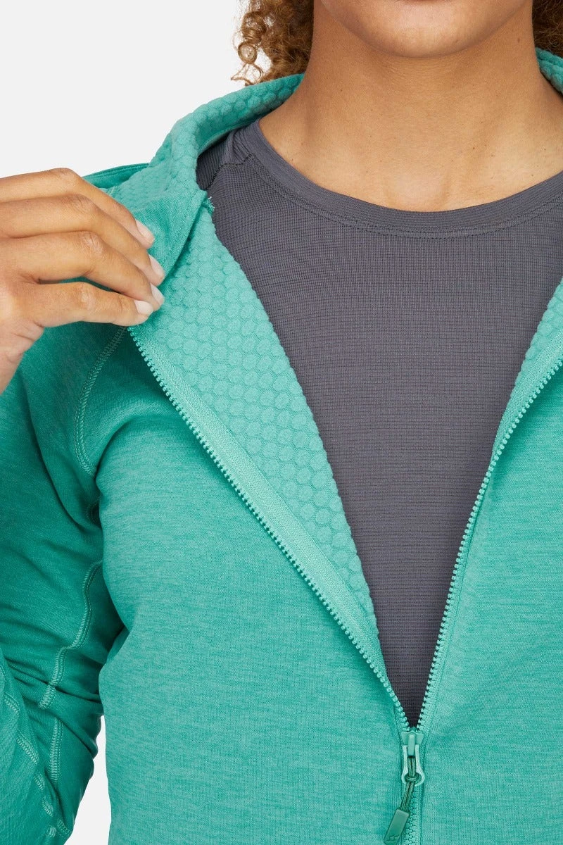 The soft, close-fitting hood fits under a helmet, providing additional warmth on an exposed crag. The hoody also features two zipped mesh-lined pockets and low-bulk seams, making it exceptionally comfortable and easy to combine with additional layers in cool conditions.