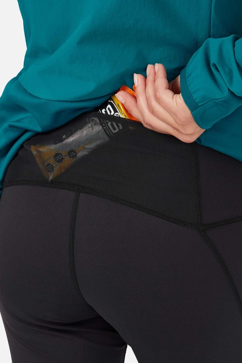 Built to run through all four seasons, these mountain tights are engineered with two advanced fabrics to give you a hybrid of wind protection, durability, and stretch where it’s needed. GORE-TEX INFINIUM™ WINDSTOPPER® panels across the front easily deflects the wind while breathing and wicking effectively. The deep waistband and back panels are built with high stretch, lightweight Flexile™ 100 ensuring a secure fit and complete flexibility on the move. Built with both a stretch mesh pocket and zipped security pocket, you can store keys, gels, snack, or phone within easy reach – ideal for shorter distances when you’re running without a pack.