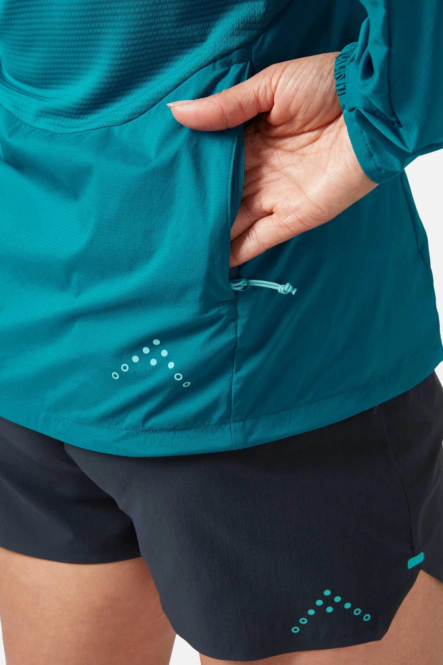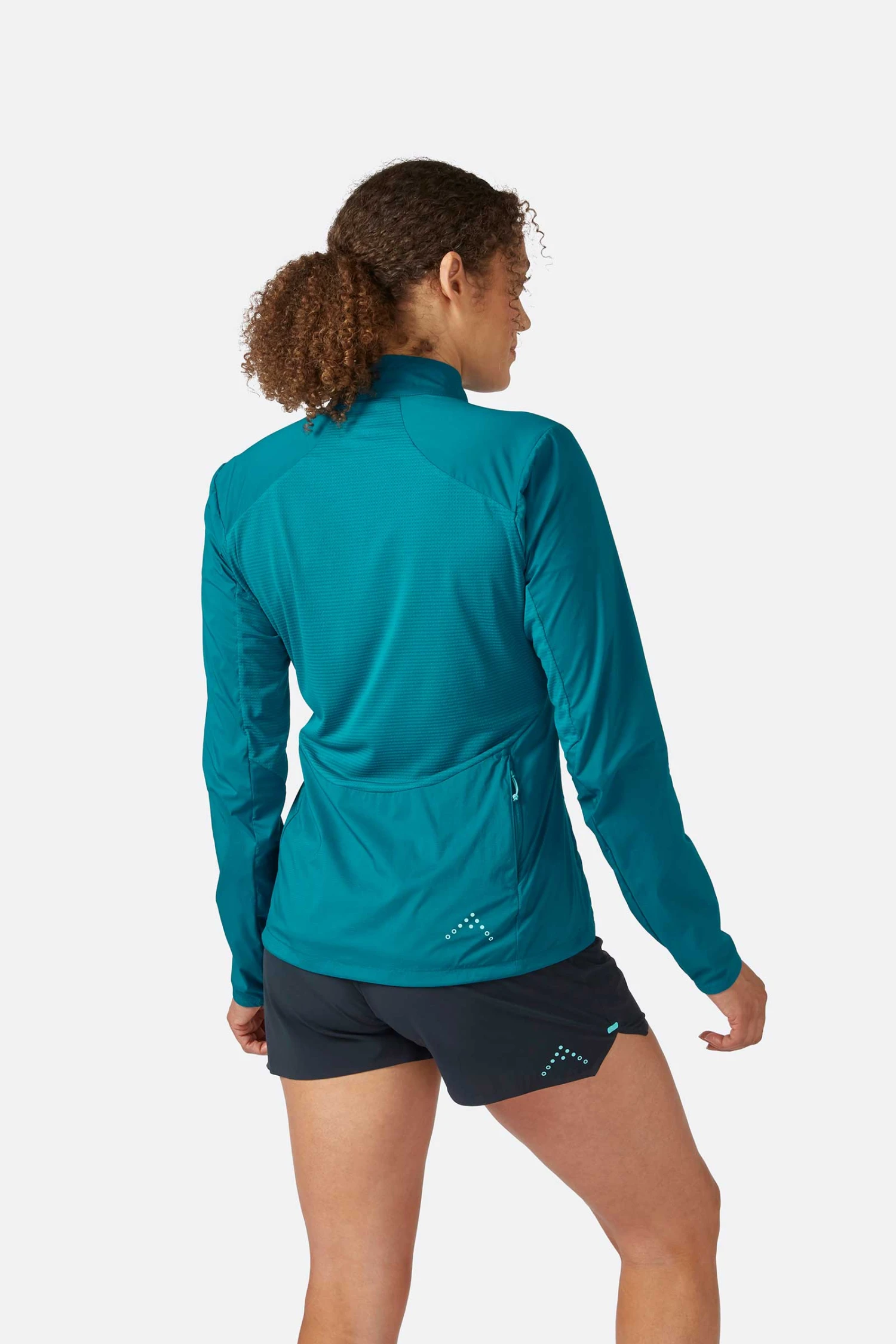 The body-mapped fabric positioning has been deliberately designed to efficiently regulate your heat and sweat, particularly when you’re wearing it with a hydration vest. Elasticated cuffs allow you to quickly check your progress on your sports watch or activity tracker and are extended to protect your hands from the cold on blustery ridges. The hem drawcord helps to seal out wind chill, while the lightweight full-length zip provides additional venting when you’re attacking an incline. Your gels or card can be stored in the small back pocket, which doubles up as a stuff sack for the jacket when it’s not needed.